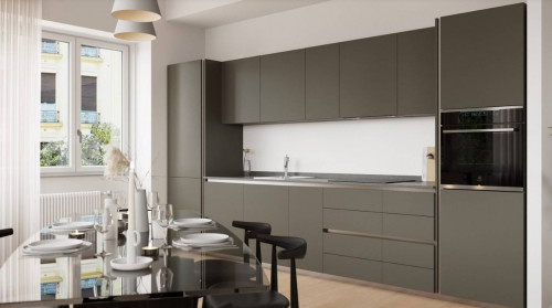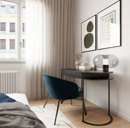 L'unità completamente ristrutturata si trova all'ultimo piano di un edificio di 9 piani e gode di una vista stupenda sulla collina e sulle Alpi.