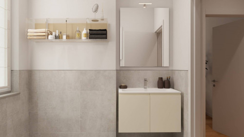 L'unità delle dimensioni interne pari a 80 mq circa ristrutturato ex novo si presenta con accesso dal piano seminterrato del civico 33 e si presenta con un soggiorno spazioso e luminoso che include zona living e cucina con affaccio esterno su un comodo balconcino , la zona notte è composta da una comoda camera da letto matrimoniale, una camera singola con affacci finestrati al piano e uno spazioso bagno decorato in gres porcellanato.