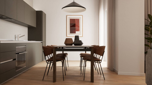 L'unità delle dimensioni interne pari a 90 mq circa risulta essere composta da ingresso su ampia zona giorno con cucina a vista, due camere matrimoniali, due bagni, disimpegno con piccola zona lavanderia ed ampio balcone che affaccia esternamente dalla zona giorno.