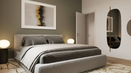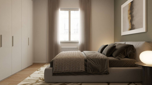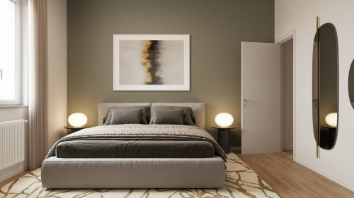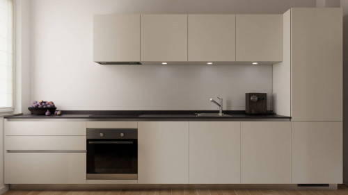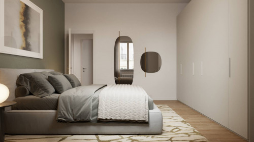 Ingresso arredabile, soggiorno con angolo cottura, due camere da letto entrambe matrimoniali, ripostiglio, bagno finestrato.
