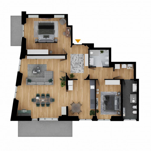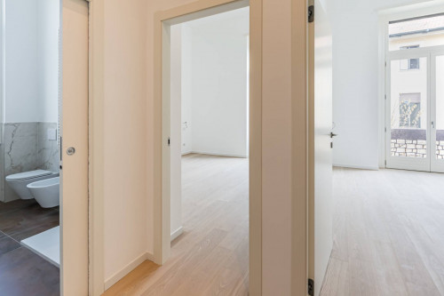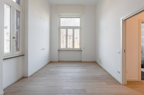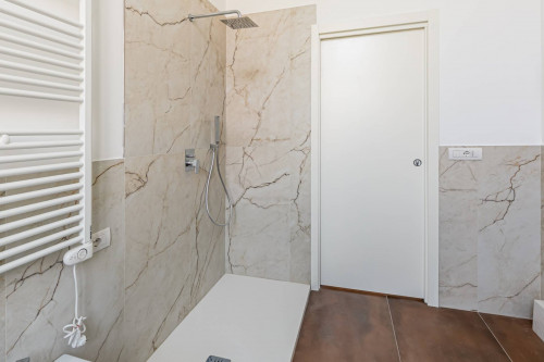 In tutto l'Appartamento è stato posato elegante parquet in frassino ed i bagni sono stati realizzati con piastrelle effetto marmo ed altre colorazioni.