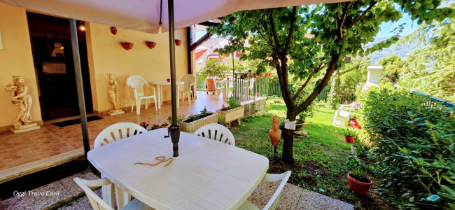 Piano terra con ingresso indipendente su ampio giardino con impianto d'irrigazione e angolo barbecue, ingresso su ampio soggiorno con cucina abitabile separata, camera matrimoniale, secondo portone d'ingresso;